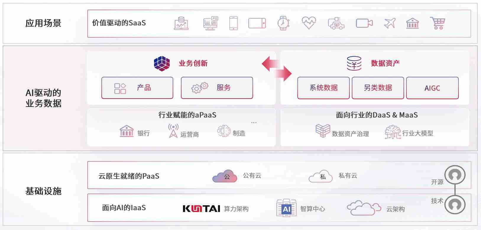数字时代,,,,围绕企业数字化转型的关键要素,,Z6尊龙时凯数码开创性的提出数云融合战略和技术体系框架,,,着力在云原生、、、、数字原生、、AI原生和信创产业上架构产品和服务能力,,,为处在不同数字化转型阶段的快消零售、、汽车、、金融、、、医疗、、政企、、、、教育、、运营商等行业客户提供泛在的敏捷IT能力和融合的数据驱动能力,,,,构建跨界融合创新的数字业务场景和新业务模式,,,,助力企业级客户建立面向未来的核心能力和竞争优势,,全面推动社会的数字化、、、智能化转型升级。。。