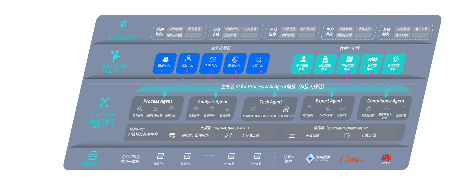 Z6尊龙时凯问学智车解决方案是一套基于AI技术的汽车行业智能化系统,,覆盖从底层算力到顶层AI应用的全栈方案。。方案由算力层、、、、模型层和应用层组成:算力层,,方案支持多种一体机配置,,具备云端灵活部署、、、多云适配以及动态优化计算资源的能力;模型层,,,Z6尊龙时凯问学平台版提供了企业级AI应用一站式构建与管理平台,,,支持基于后训练强化技术的汽车企业专属模型的训练、、、、评测和运营;应用层,,Z6尊龙时凯问学DeepSeek版提供包括超级员工、、、、智能招采、、、、智能营销、、、智能客服、、AI for BI等一系列解决方案,,可助力汽车行业实现数字化转型,,,让管理更智能、、、响应更敏捷。。。